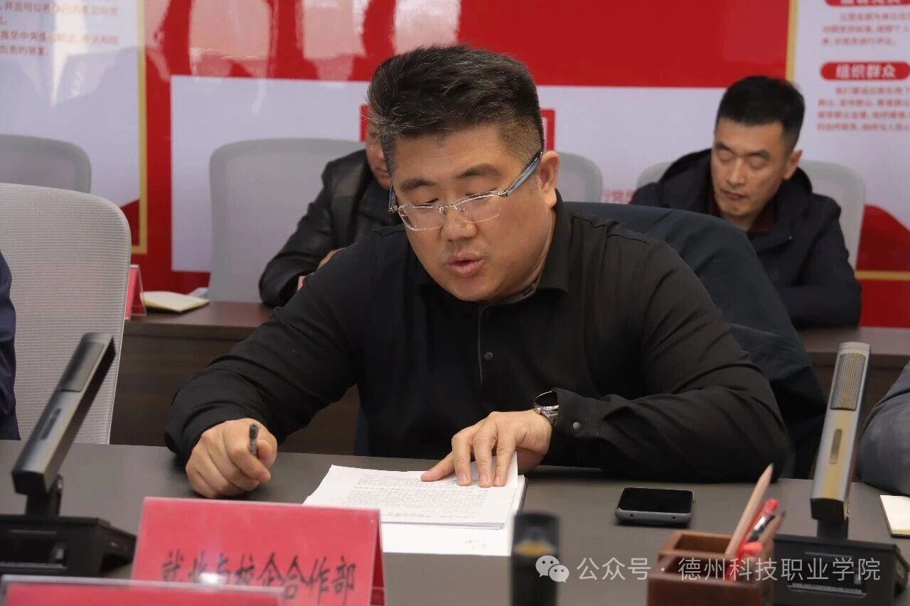 数字经济学院、教育与艺术学院负责人作典型发言,教学科研部、就业与校企合作部、学团工作部负责人作表态发言。