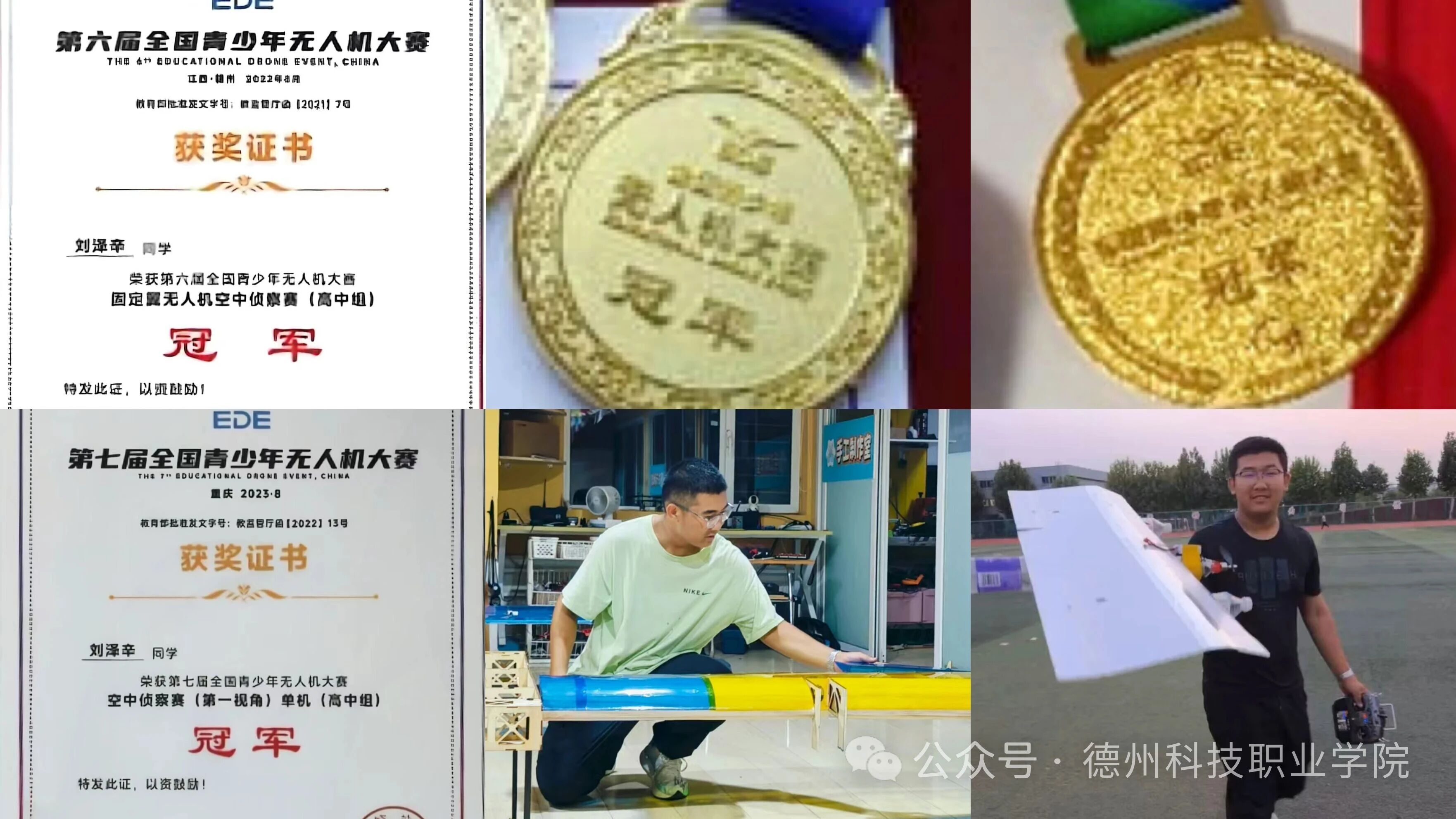 刘泽辛自幼热爱航模与无人机技术,高中阶段曾两度斩获全国青少年无人机大赛冠军。入校后,在航空学院专业教师悉心指导与学校优质育人平台支撑下,他深耕专业、勤学苦练,在各级技能竞赛中屡创佳绩。学校高度重视拔尖技能人才培养,为其组建个人创新工作室、配备专业设备,支持其担任航空学院新蜂无人机社团技术负责人,为其成长成才搭建广阔舞台。
