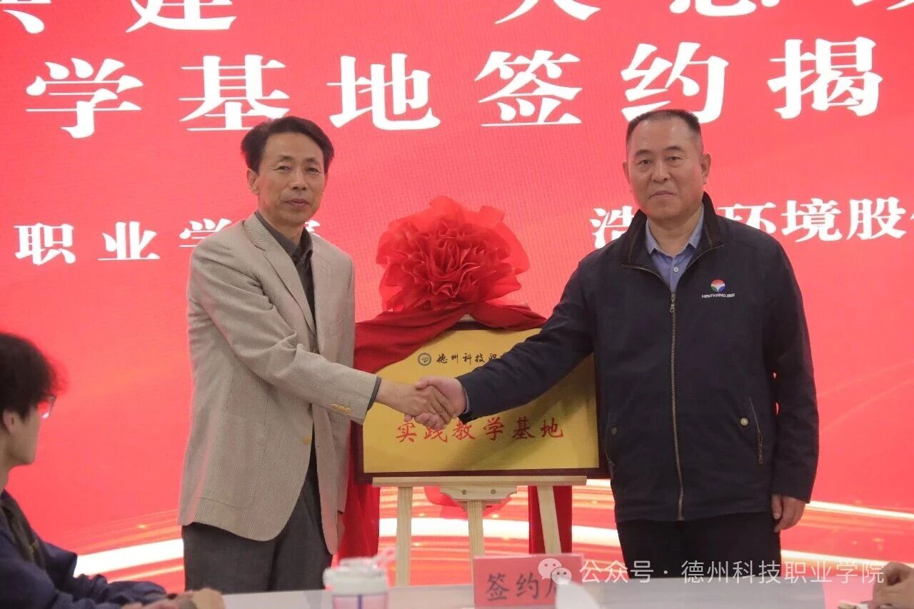 在热烈的掌声中,校企双方代表共同签署《“大思政课”实践教学基地共建协议》。赵奎利与刘兆东共同为“德州科技职业学院‘大思政课’实践教学基地”揭牌,标志着基地正式成立。