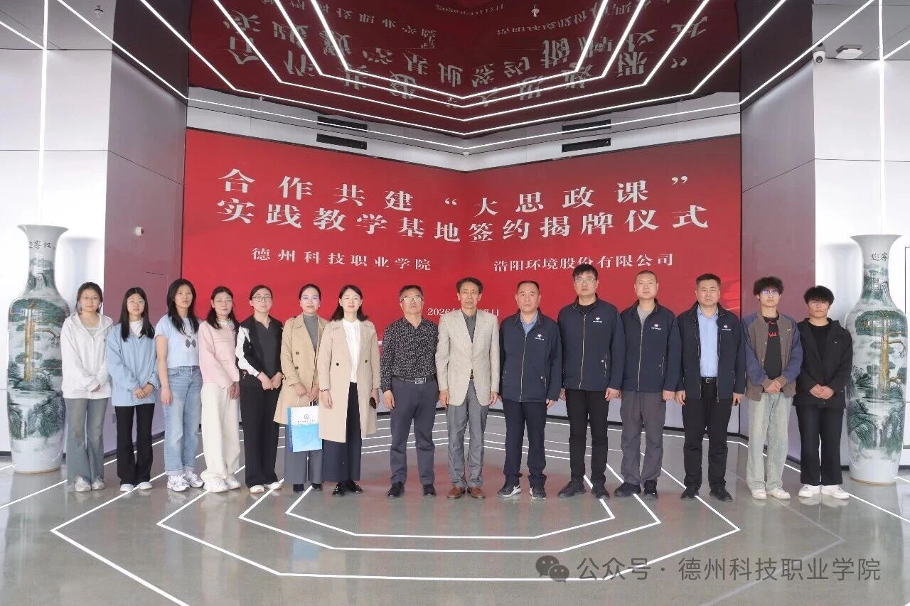 为深入推进“大思政课”建设,推动思政教育与产业实践深度融合,近日,学校与浩阳环境股份有限公司举行“大思政课”实践教学基地签约揭牌仪式。浩阳环境股份有限公司董事长赵奎利,学校党委书记刘兆东,党委副书记、纪委书记张祖军出席仪式。