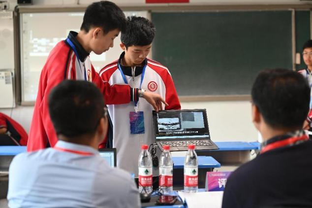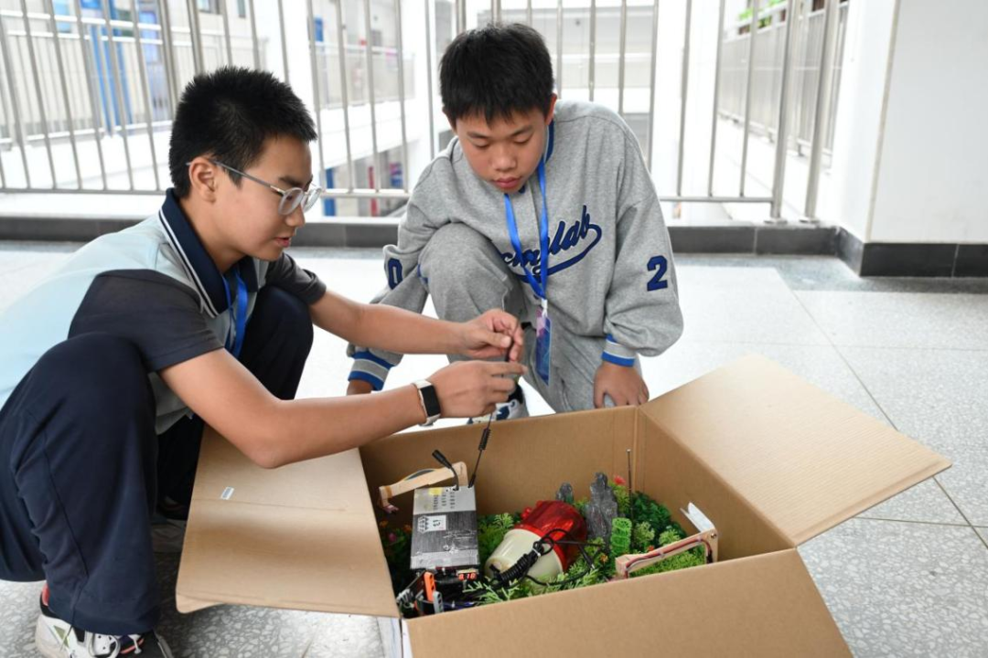 郭帅辰和张凌郝正在介绍合作设计的
