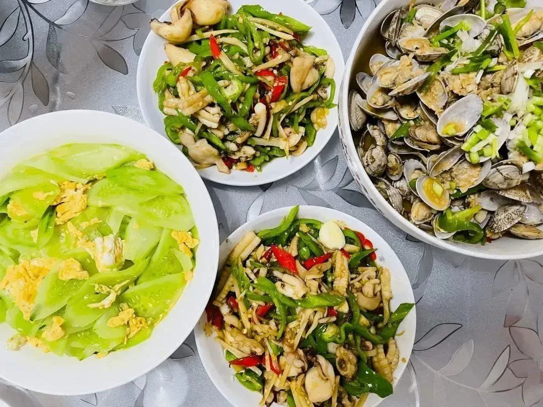 食材都是爸妈喜欢的,准备了凉拌花甲、辣炒章鱼足、黄瓜炒鸡蛋,想着他们一会儿欢喜的模样,顿时充满了动力,加快了翻炒的速度。