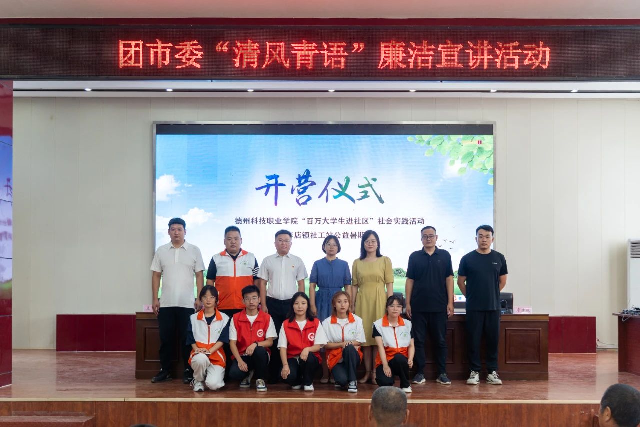 7月25日,德州科技职业学院"百万大学生进社区"社会实践活动志愿者,走进禹城市辛店镇,进行社工站公益暑期开营仪式。