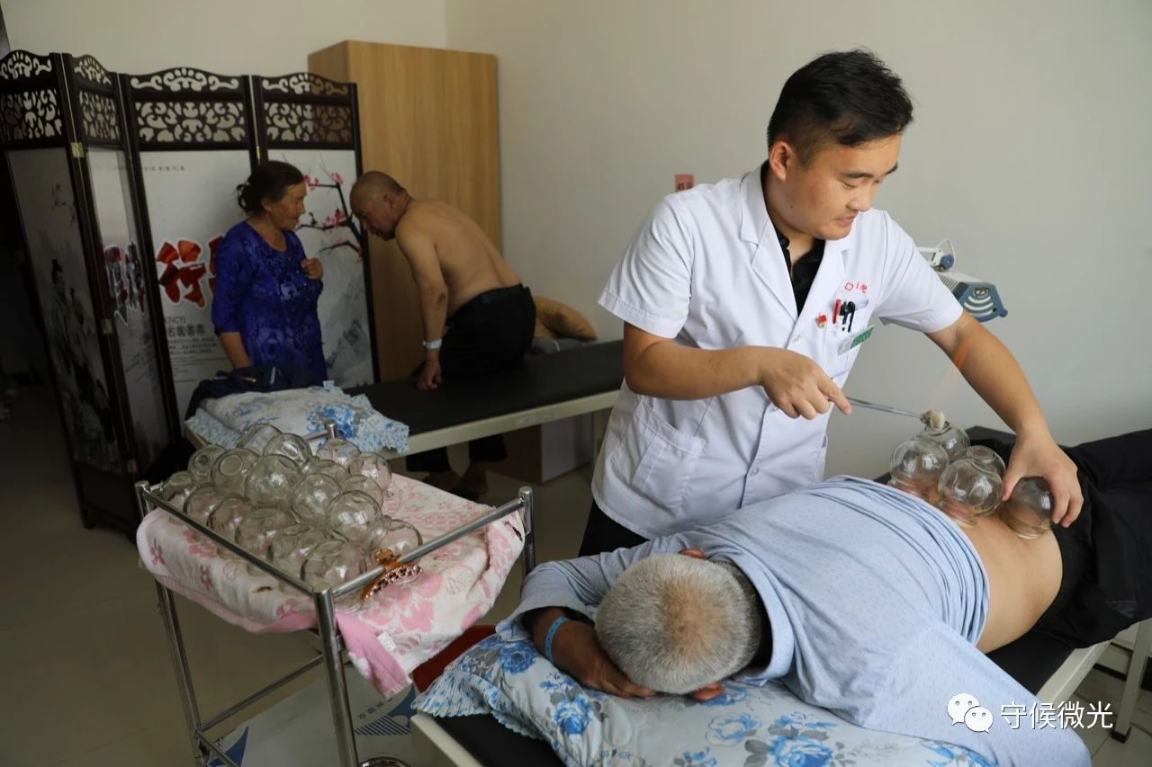 8月26日,新疆生产建设兵团第十四师昆玉市47团医院,中医科负责人艾乐松正在为一位维吾尔族大爷拔火罐。艾乐松是山东济宁人,目前担任医院的团支部书记、中医科负责人,是2014年西部计划志愿者。2014年毕业后,他从报名参加西部计划的同学处得知47团特别缺中医这一情况后,决定放弃山东优渥的工作和安逸的生活,于当年8月独自一人踏上了开往西部的列车。中青报·中青网记者 陈剑/摄