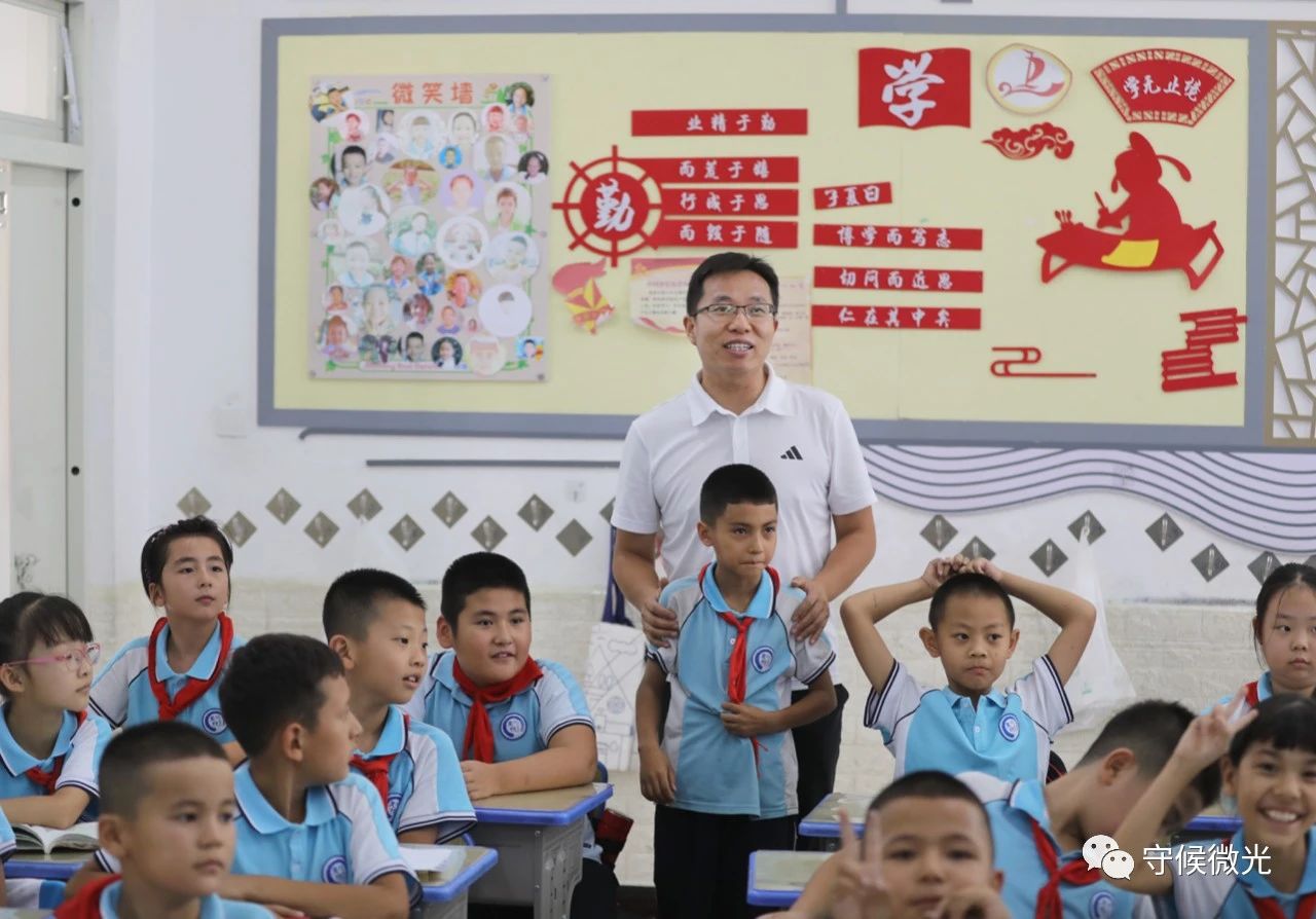 8月24日,新疆维吾尔自治区阿克苏地区阿克苏市天杭实验学校,校长崔振强与学生们在一起。2007年6月,崔振强选择成为一名西部计划志愿者,来到新疆阿克苏,后来便留在这里工作至今。中青报·中青网记者 陈剑/摄