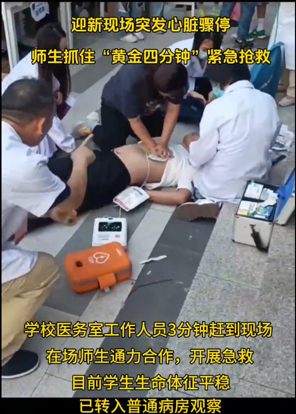 现场一位学生突然晕倒,心脏骤停
