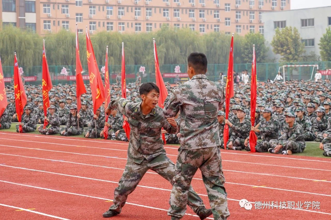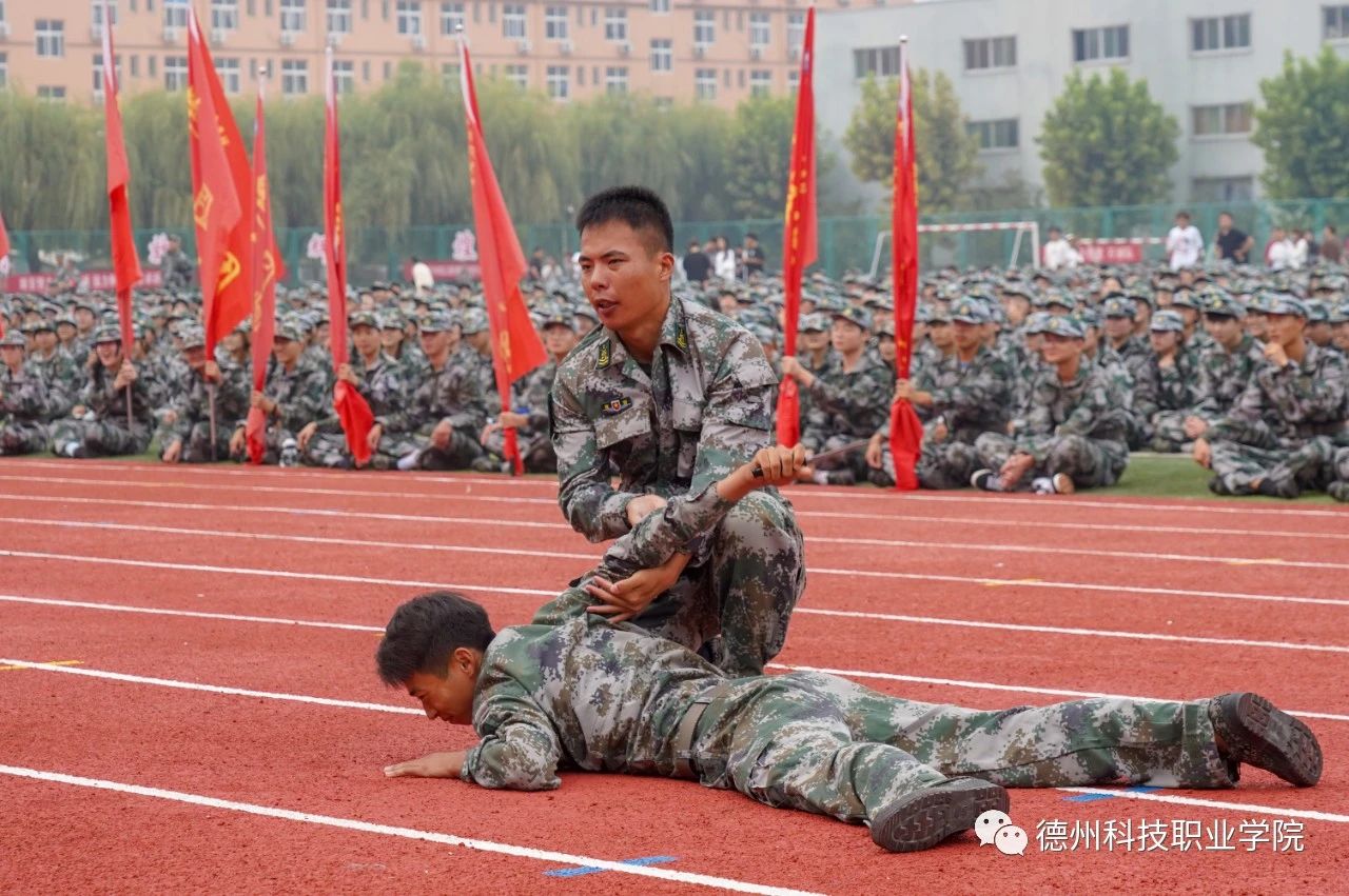 根据大会议程,张祖军向军训团授旗;2023级新生代表作表态发言;全体承训教官们还向2023级新生进行了军事训练科目内容展示。