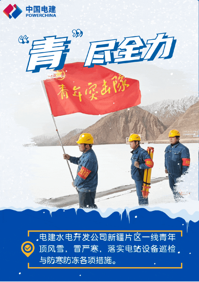 暴雪、冰冻、寒潮黄色预警,多地三预警齐发!祖国大地千里冰封,新疆电建青年挺膺担当,用行动保生产、护安全。