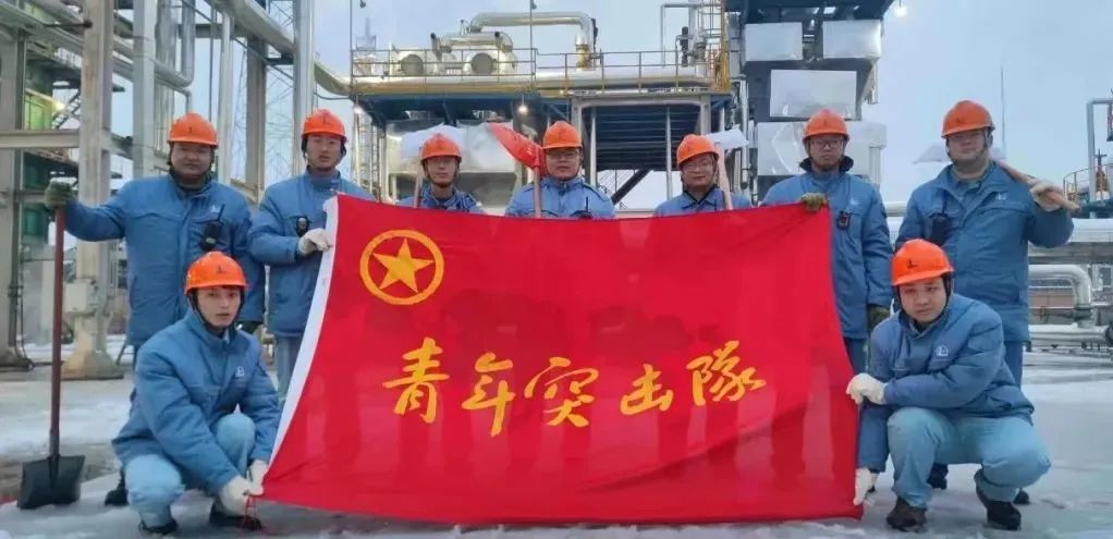 的组合模式,让本就湿滑的地面危险系数倍增,给每小时1次的装置现场巡检增加了难度。,迅速出动、迎难而上,扫雪除冰、检查排凝,分工明确、各司其职。风雪中,青年突击队的红旗和袖标,活跃在炼化装置的每一处,成为白茫茫大地上最美的风景。
