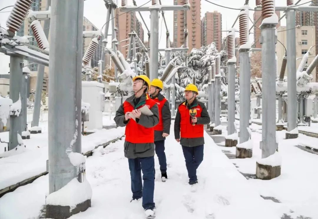国网秦皇岛供电公司坚决扛牢电力保供首要责任,第一时间发布寒潮大负荷、暴雪橙色预警,组织开展Ⅱ级预警响应,采取多项举措积极应对。公司团委组建青年突击队,全力保障电网安全稳定运行,为经济社会发展和群众温暖过冬提供坚实可靠保障。变电运维中心青年突击队强化变电设备运维,开展变电站内、外环境特巡,对SF6设备压力、变压器等充油设备的油温、油位进行观察和记录,观察导线、线夹有无异常、接头是否熔雪,防止支柱瓷瓶等室外设备由于积雪融化形成冰溜,及时处理影响电网安全运行的危急缺陷,加大设备覆冰覆雪特巡特护,防止发生雪闪、冰闪事故。