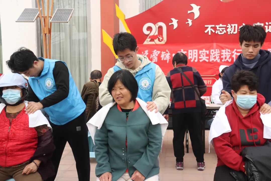 在活动现场,志愿者们面向社区群众开展测量血压、推拿按摩、反诈宣传等志愿活动。在测量血压的过程中,志愿者与居民交流,了解生活和身体状况,叮嘱他们在日常生活中要规律生活、饮食清淡;在推拿按摩中,建议居民们不要久坐、开展一些关于保护颈椎的操练;在开展反诈宣传过程中,志愿者们发放宣传单页,详细讲解反诈知识,引导居民特别是老年人时刻紧绷防范之弦,谨防电信诈骗犯罪。