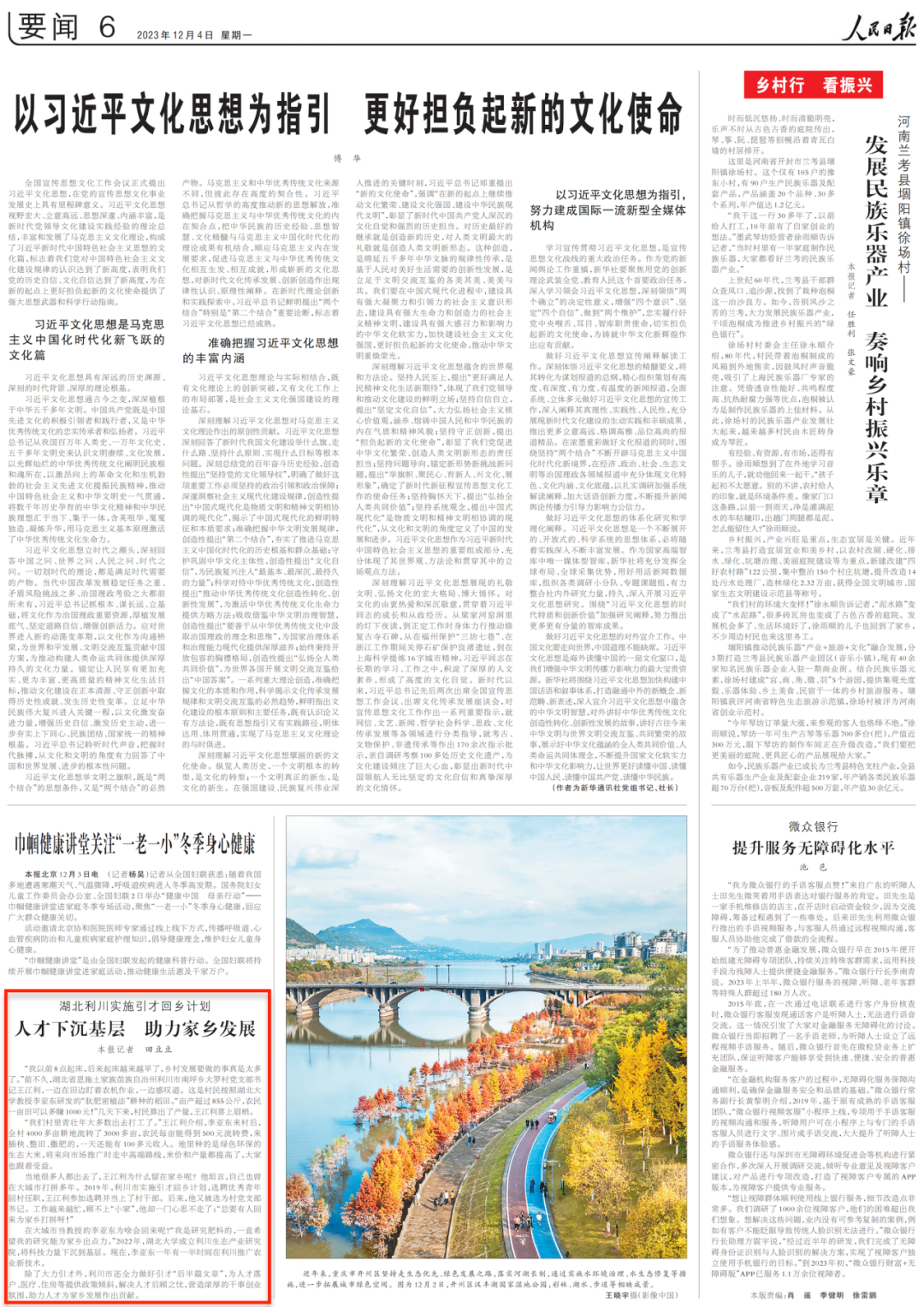 ◆《人才下沉基层 助力家乡发展》(人民日报,2023-12-4,第06版)