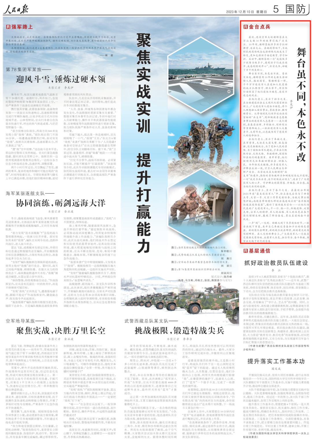 ◆《舞台虽不同,本色永不改(金台点兵)》(人民日报,2023-12-10,第05版)
