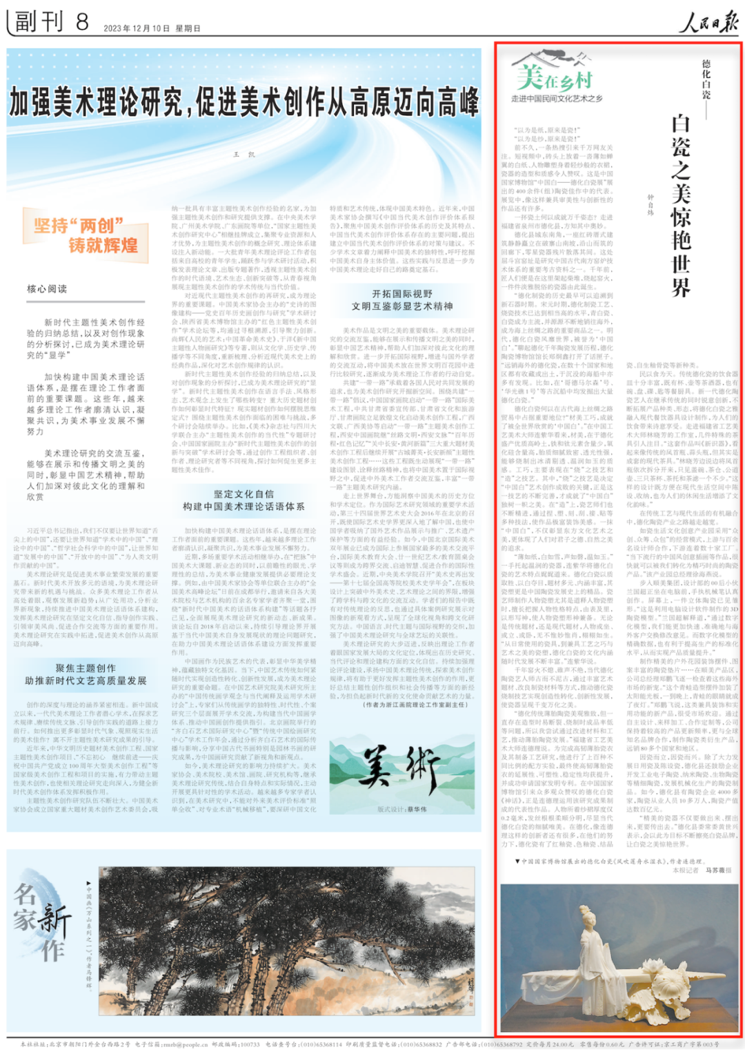 ◆《德化白瓷——白瓷之美惊艳世界(美在乡村·走进中国民间文化艺术之乡)》(人民日报,2023-12-10,第08版)