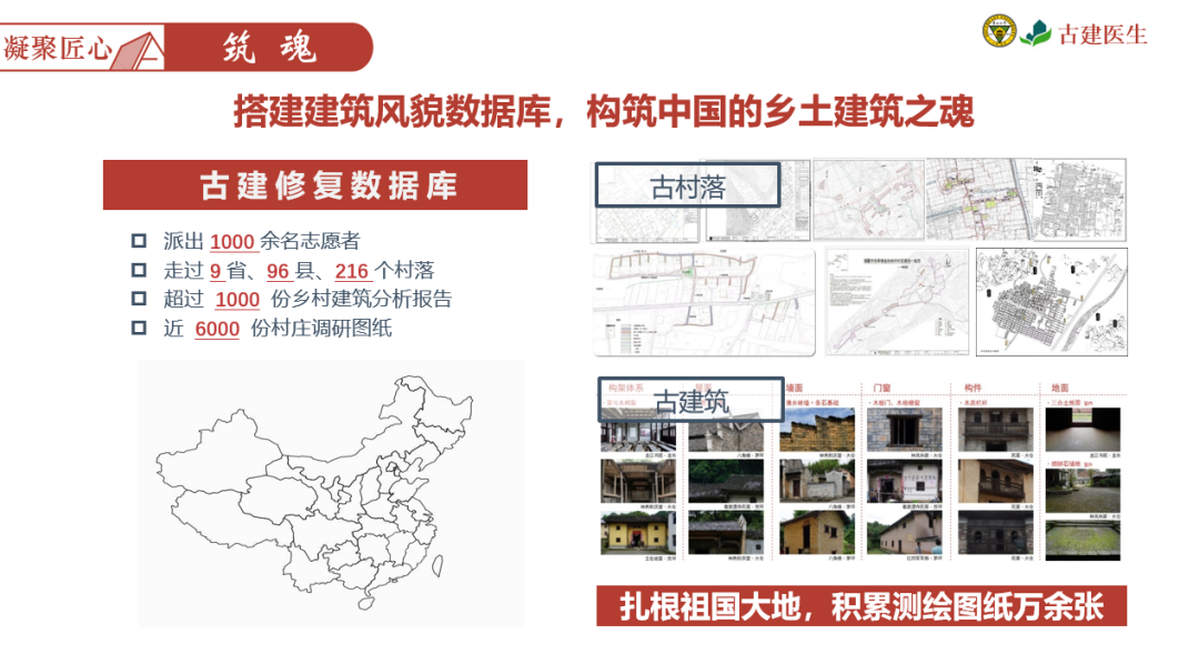 在前期调研测绘、中期引入智慧文保平台,并汇总到项目数据库中,定期对这些样本进行监测和实时修缮,活化古建,使其共同构筑成为中国的乡土之魂。