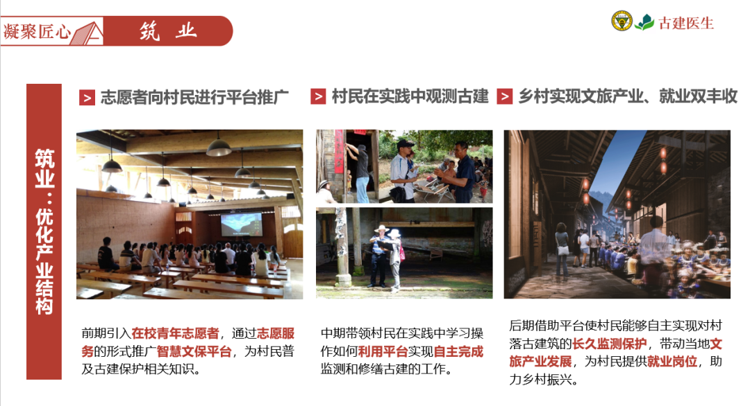 以志愿服务的形式推广智慧文保平台,带领村民在实践中学习古建保护相关知识、技能,从而使乡村在未来能够自主实现对村落古建筑的长久监测保护,带动当地文旅产业发展,助力乡村振兴。