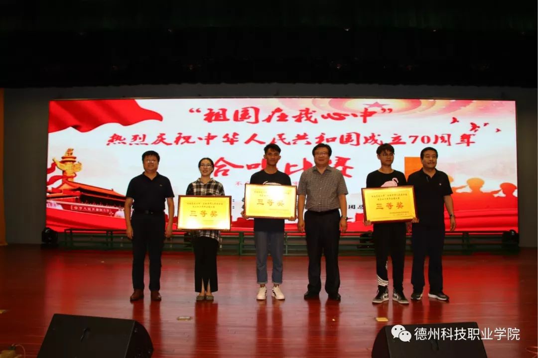 在比赛中,来自主校区各院系的8支代表队先后通过演唱《没有共产党就没有新中国》、《歌唱祖国》等一首首红色歌曲,用歌声歌颂党、歌颂祖国、歌颂新时代,表达出德科学子对党的无限热爱和对祖国母亲的深情祝福。比赛现场,由有关部门负责人组成的评委,本着“公平、公正、公开”的原则,对各参赛代表队演唱效果进行打分。经过激烈角逐,德州机电工程学校代表队演唱的《团结就是力量》得到现场评委和观众一致好评,获得一等奖。