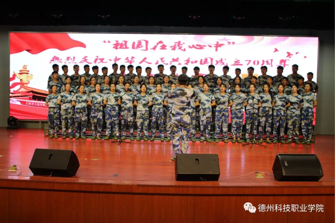 为庆祝中华人民共和国成立70周年,抒发爱党爱国情怀,唱响美好生活新旋律,9月11日晚,由学院团委主办的“祖国在我心中 庆祝中华人民共和国成立70周年”合唱比赛在主校区大禹大讲堂举行。共青团禹城市委副书记金林,71901部队68分队副政治教导员靳存宝,学院首任书记、院长朱国材,主校区院长周伟,副院长时来春等,与承训部队全体教官、2019届全体新生一同观看比赛。