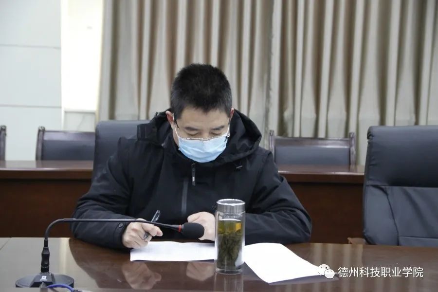 在督导检查总结会上,督导组成员分别就督导检查情况向学院进行反馈,并就下一步疫情防控和应急处置工作提出落实意见。张卫东在总结讲话时指出,自开展疫情防控和落实应急处置工作以来,德州科技职业学院严格按照省、市教育工委和教育厅工作要求,及时落实各级党委、政府和教育主管部门的文件、方案、手册,紧密结合学院实际,认真开展疫情防控和应急处置工作。下一步,要进一步提高政治站位、增强重视程度,认真对照2020年春季学期开学条件核验准则和各项指导手册、实施方案,严格落实“宁可十防九空、不可失防万一”的要求,强化疫情防控和应急处置,继续规范、细化各工作组职责,完善各项预案和管理,确保疫情防控和应急处置工作抓实抓细。