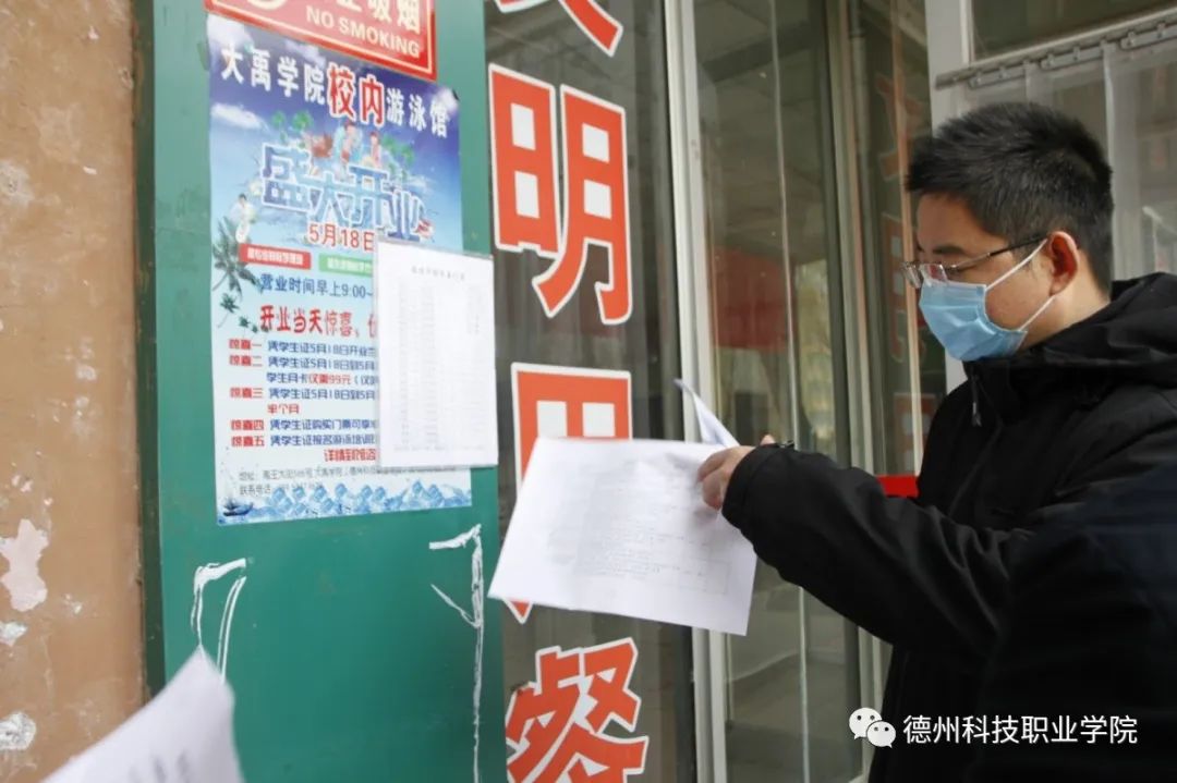 3月13日上午,德州市委教育工委副书记、市教育局党组副书记张卫东,市委教育工委办公室主任姚宏勇、副主任张薇,来学院就新冠肺炎疫情防控工作和应急处置工作进行专项督导检查。学院党委副书记、副院长、主校区党总支书记朱纪辉,副院长、主校区常务院长周伟,院领导时来春、王来恩、张祖军、孙君等陪同检查。