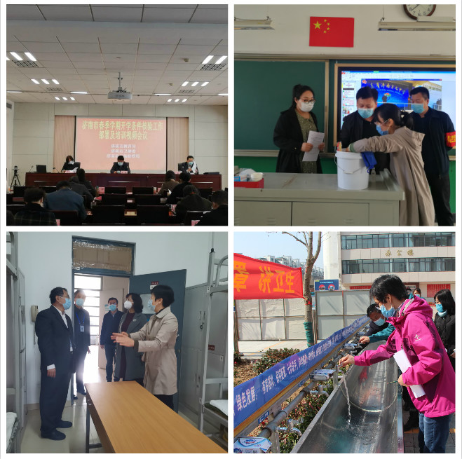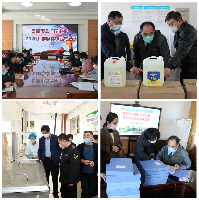 根据工作安排,3月23日起,济南市教育局会同济南市卫健部门、市场监管部门联合组建了11个检查组,依据《山东省中小学校2020年春季学期开学条件核验细则》指导属地学校做好开学前的各项核检工作。在学校自查、属地核验并督促整改的基础上,市级检查组赴各区县,以最严格的标准,最严谨的态度,通过查阅资料、现场连线、随机访谈、实地查看、现场演示等形式,对属地各有毕业年级的高、初中学校逐一进行开学条件核验工作。