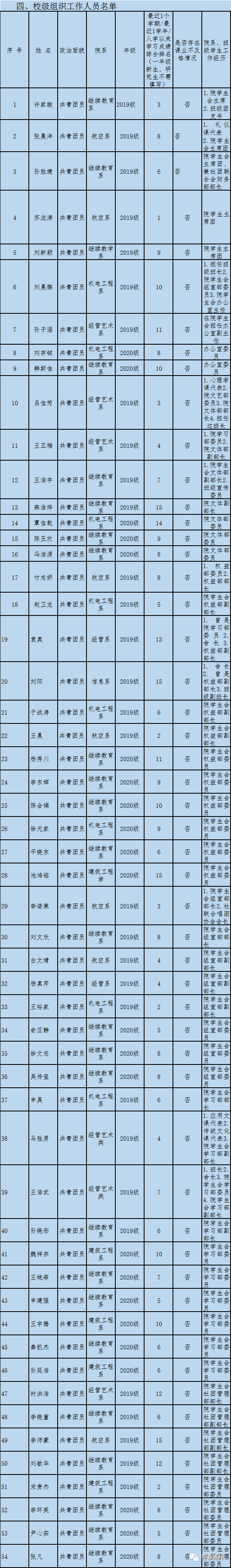 四、校级组织工作人员名单