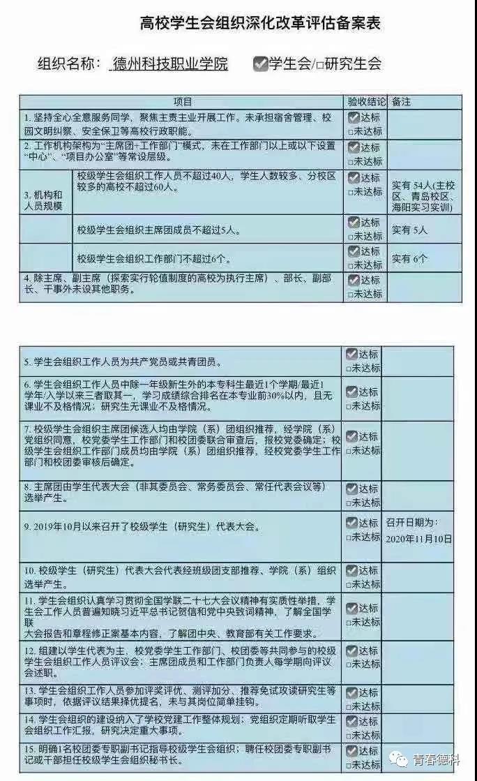 为落实共青团中央、教育部、全国学联联合下发的《关于推动高校学生会(研究生会)深化改革的若干意见》,按照《高校学生会组织深化改革评估工作方案》要求,接受广大师生监督,现将我院(主校区、青岛校区、海阳实习实训基地)学生会改革情况公开如下。