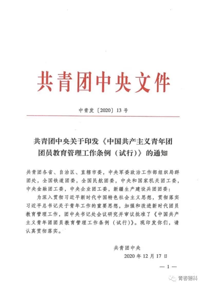 共青团中央关于印发《中国共产主义青年团团员教育管理工作条例(试行)》的通知