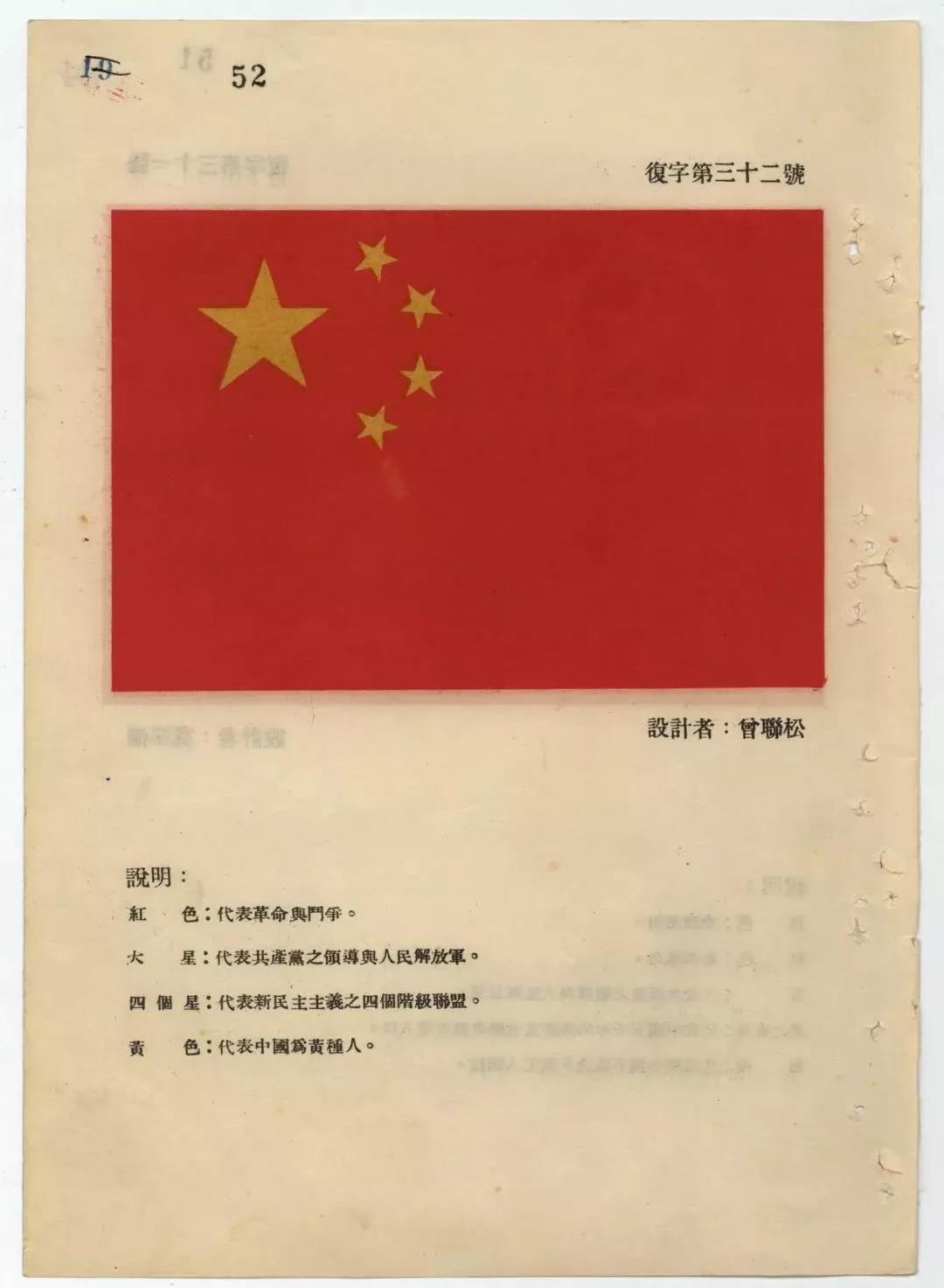 1949年7月中旬,曾联松在报纸上看到新中国国旗图案征稿启事。他仔细读了几遍:祖国新生,群策群力,我为何不能一试?