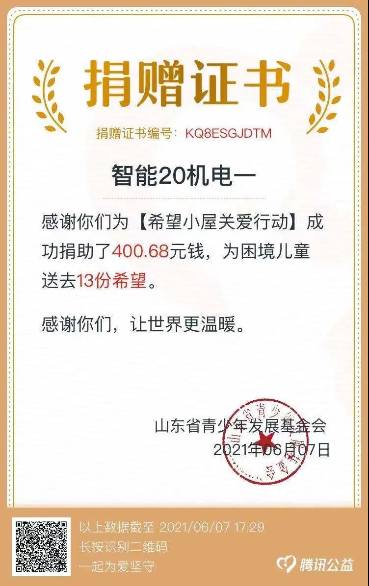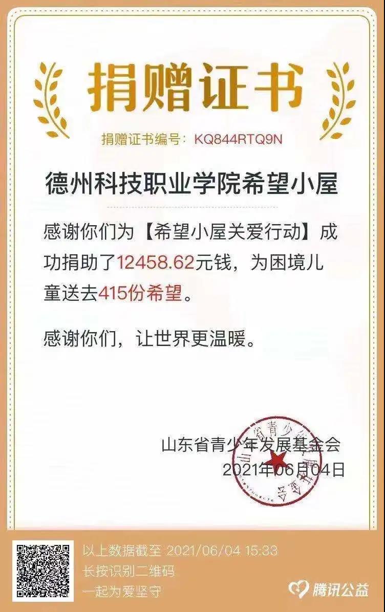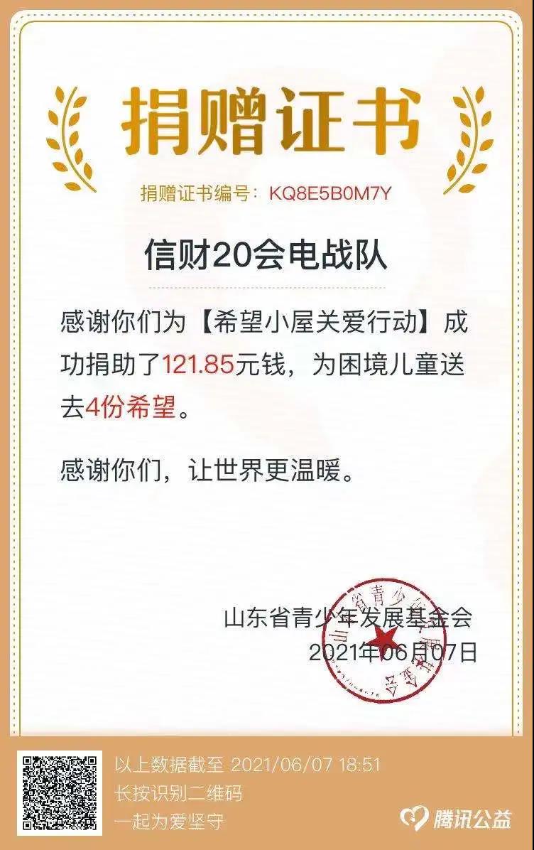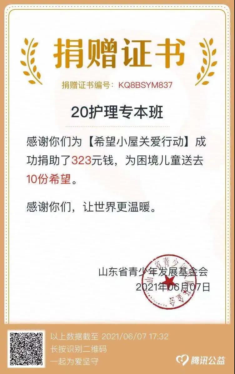 5月20日至6月3日,我院各级团组织、教师、团干部、团员、广大青年积极行动起来,组建战队,奉献爱心,共募集善款12458.62元,为困境儿童送去415份希望,在此向各位爱心人士表达诚挚的谢意:感谢支持、感谢帮助、感谢关怀