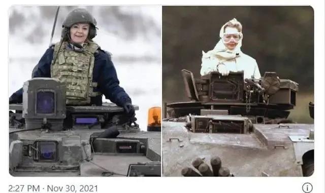 报道还称,利兹·特拉斯即将发布的这一演讲是在打造她“当代撒切尔”的政治形象。上周,这位英国外交大臣刚刚出了一把风头——在访问爱沙尼亚时她身着防弹背心和头盔乘坐坦克兜风,并摆拍照片。此举令媒体纷纷把她与有“铁娘子”之称的英国前首相玛格丽特·撒切尔拿来比较,后者曾在1986年访问德国时也乘坐过坦克。