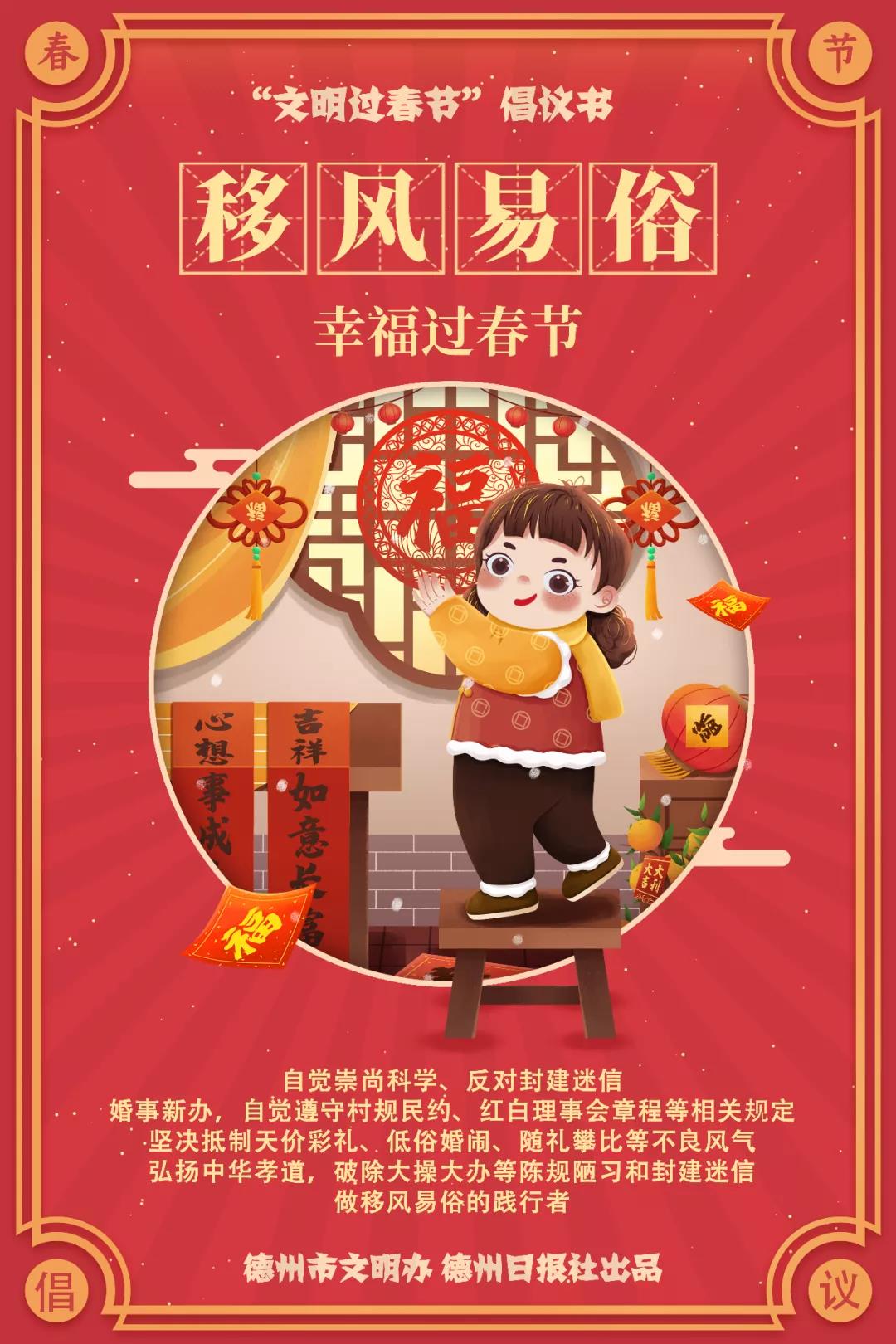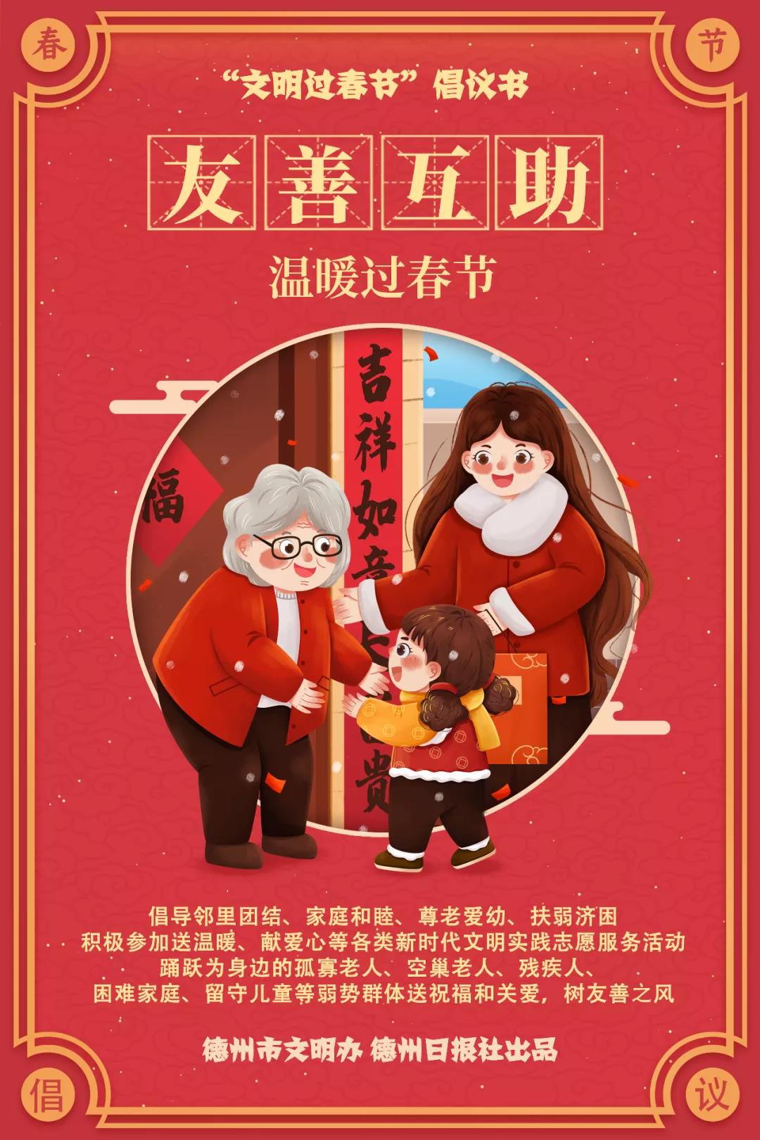 金虎迎春早,文明气象新。在2022年春节即将来临之际,为弘扬传统美德,践行绿色生活,树立文明新风,共同度过一个文明健康、生态环保、欢乐祥和的节日,在此向全体市民朋友发出如下倡议: