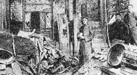1926年4月,被奉军飞机抛掷炸弹后的天和玉饭馆(本版图片由FOTOE提供)
