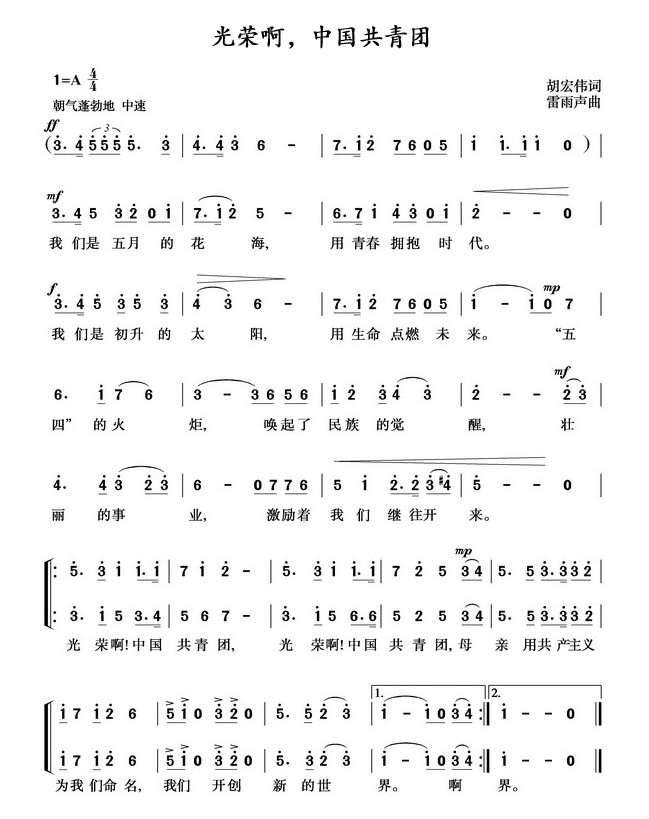 2003年3月,中国共青团第十五次全国代表大会筹委会宣传组专门通知创作者,让他们对代团歌《光荣啊,中国共青团》作进一步的修改完善。雷雨声为了让歌曲更完整地表现“五四时期”到新世纪的时代感,对乐曲进行了修改,缩短了歌曲长度,由原来的从头反复,改为副歌反复,并重新编写了配器。为了便于团歌在不同场合的演唱,雷雨声还精心创作了四个版本:标准版、艺术版、管弦乐演奏版和军乐演奏版。2003年7月23日,在中国共产主义青年团第十五次全国代表大会上,全体代表投票表决,通过了关于《中国共产主义青年团章程(修正案)》的决议。