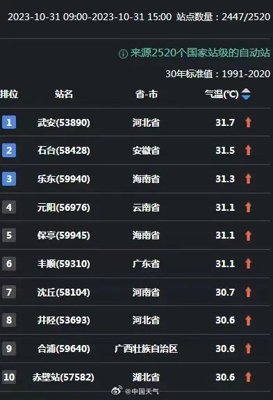 比如,郑州、菏泽等地可能在11月1日前后迎来当地11月观测史上的首个30℃。