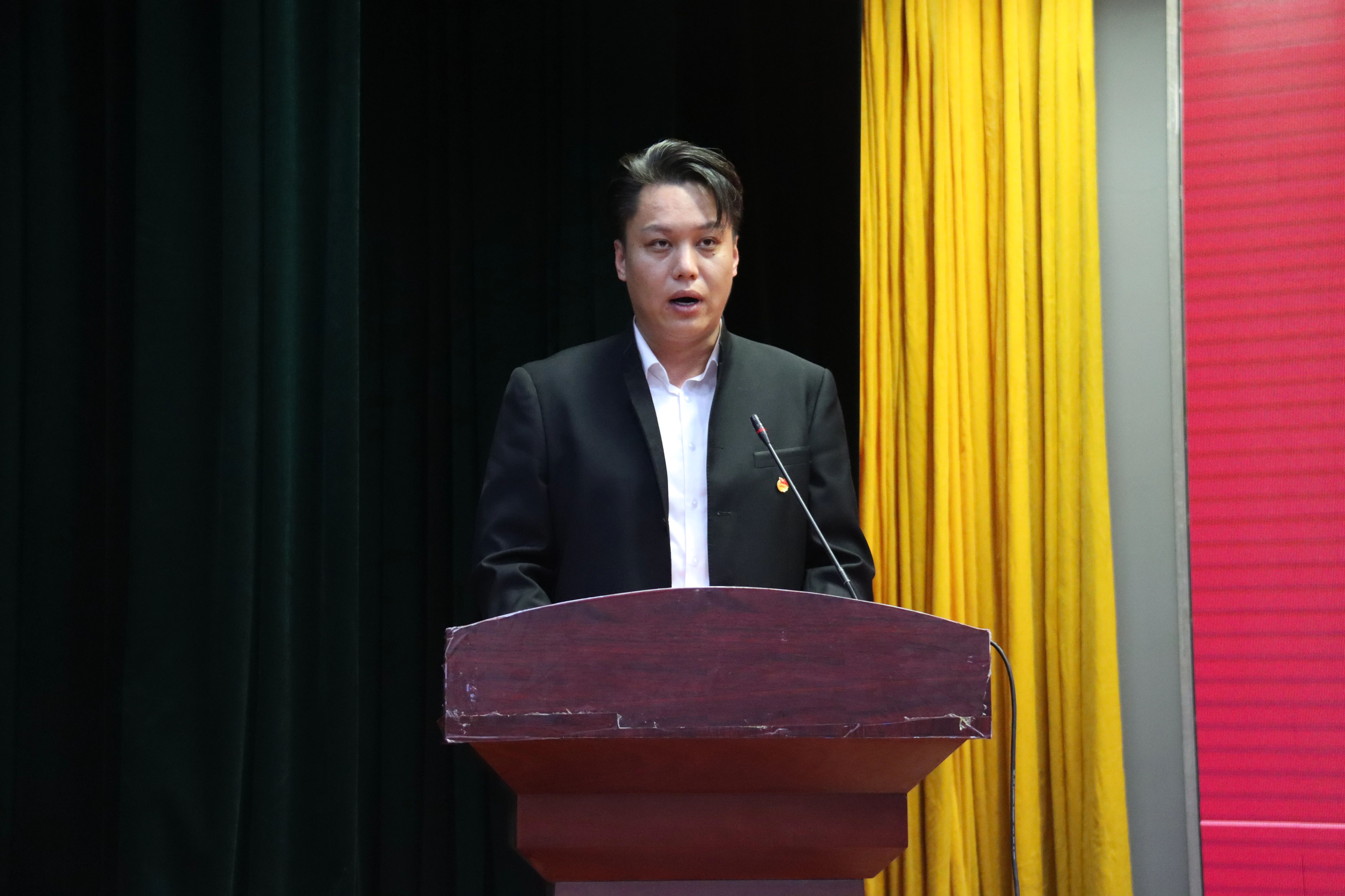 “优秀团务工作者”代表侯林康同志分享了团务工作经验。他回顾了交通学院团总支从无到有、逐步发展壮大的历程,并强调思想引领、组织建设、志愿服务及校园文化活动是推动团务工作提质增效的关键。他引用李大钊“青年者,人生之王,人生之春,人生之华也”的箴言,激励青年在团旗的引领下勇担使命、绽放青春光彩。