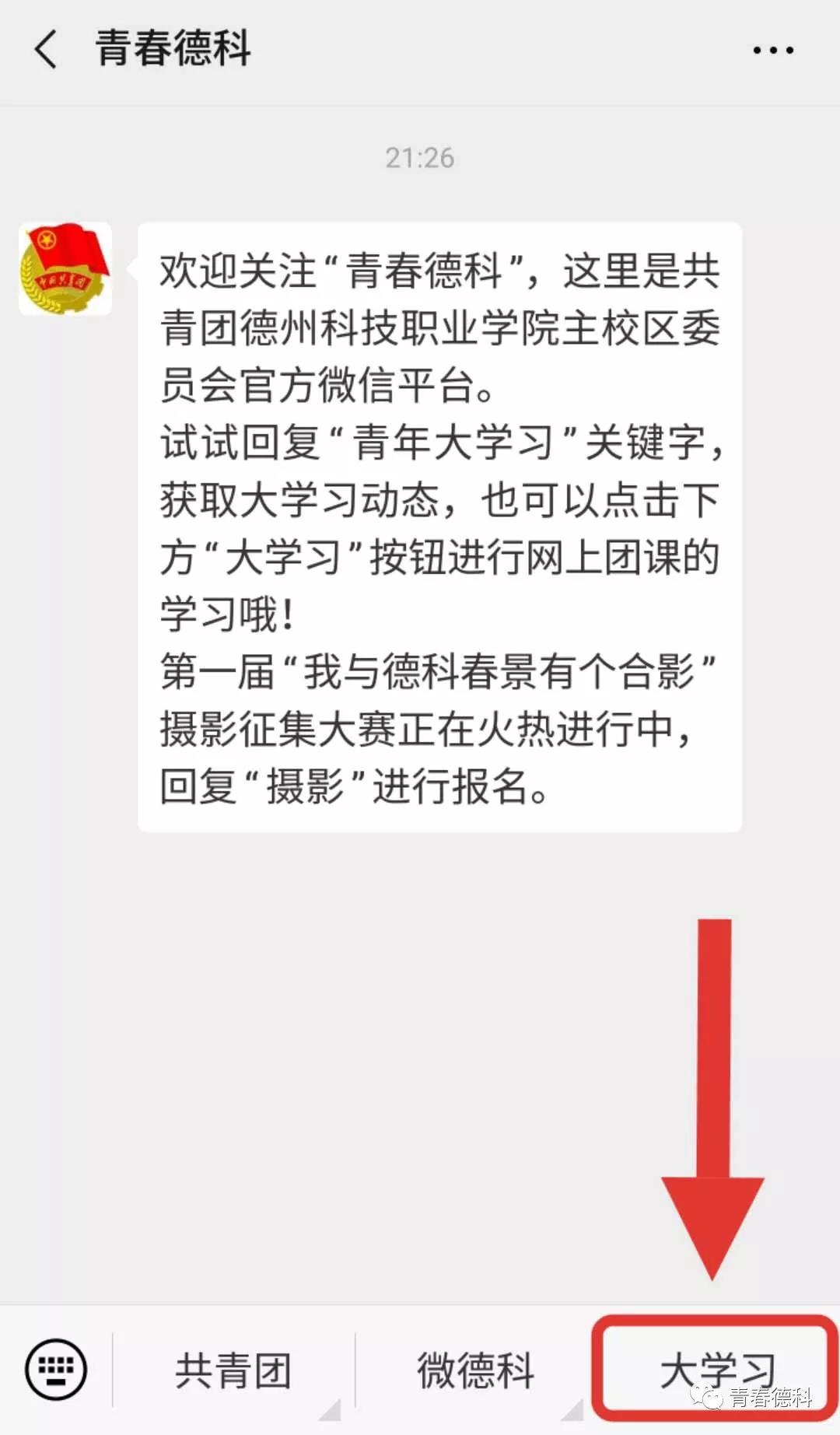 关注“青春德科”官方微信公众号