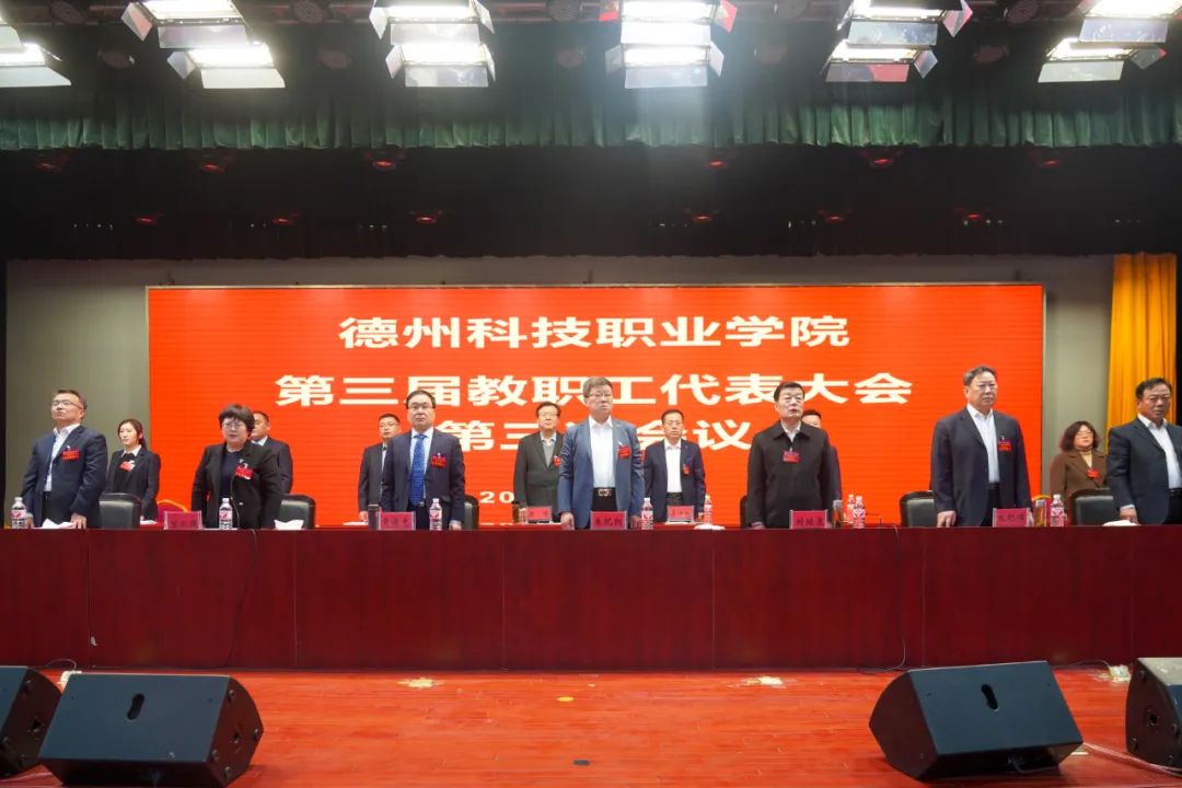 在雄壮的《义勇军进行曲》中,学院三届三次教职工代表大会开幕。