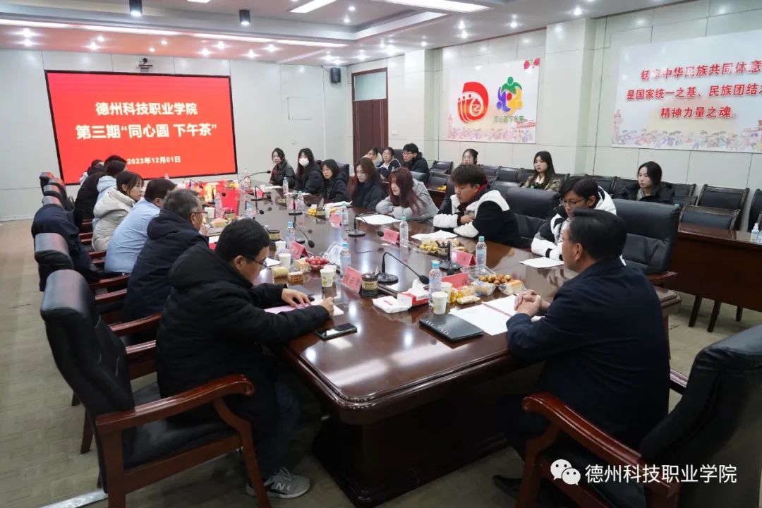 为深入贯彻落实党的二十大精神关于民族团结进步的有关要求,铸牢中华民族共同体意识,营造各民族学生和睦相处、携手并肩的浓厚氛围,12月1日下午,学院党委开展第三期“同心圆·下午茶”主题活动。禹城市委统战部主持日常工作的副部长孙伟,禹城市委统战部副部长程云霄,学院党委副书记、组织部长张祖军出席活动。学院党委委员、宣传部长、统战部长、思政课教学部主任马东主持活动。