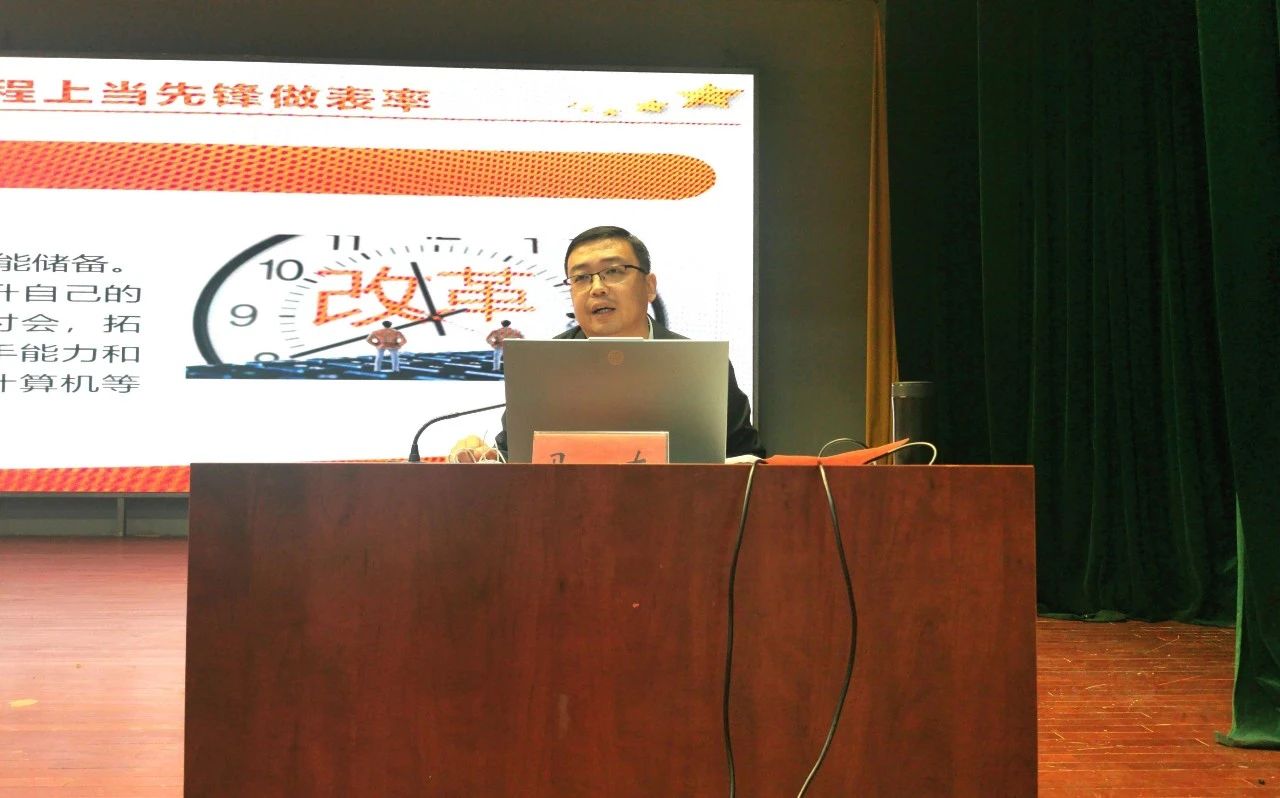 仪式结束后,党委委员、党群工作部部长马东以《在改革创新的征程上贡献青年作为》为题为同学们讲授青马工程培训的开班第一课。