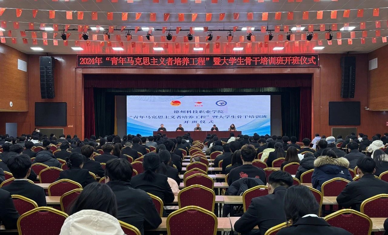 为深入学习贯彻党的二十届三中全会精神,认真贯彻落实习近平总书记关于青年工作的重要思想,全面提升大学生骨干的综合素质,12月24日,德州科技职业学院“青年马克思主义者培养工程”暨大学生骨干培训班开班仪式在图书馆三楼大礼堂隆重举行。学校党委委员、副校长李进民,党委委员、党群工作部部长马东,学团工作部部长曹仁德,马克思主义学院院长冯莹及各二级学院团总支书记、学生副科长出席此次仪式,仪式由校团委书记兼学团工作部副部长刘艺博主持。