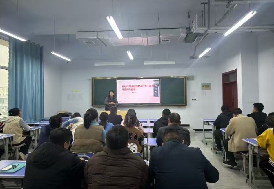 随后,周志娟副科长详细解读了《新时代高校教师职业行为十项准则》,包括坚定政治方向、自觉爱国守法、传播优秀文化、潜心教书育人、关心爱护学生、坚持言行雅正、遵守学术规范、秉持公平诚信、坚守廉洁自律、积极奉献社会等十个方面。她结合具体案例,生动形象地阐述了每一项准则的内涵和要求,使教师对如何在日常教学中践行这些准则有了更加清晰的认识。