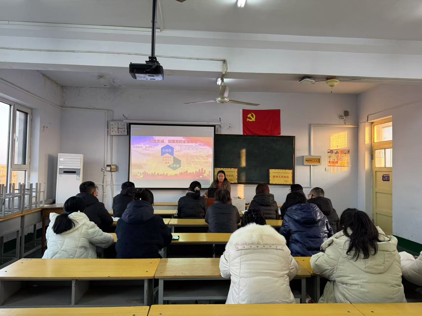 本次培训的主题是“崇德敬业 铸魂育人”学院采用两地视频连线方式进行,旨在促进两地教师之间的实时互动与共同学习。本次培训由我院党总支书记邵淑华同志担任主讲人。