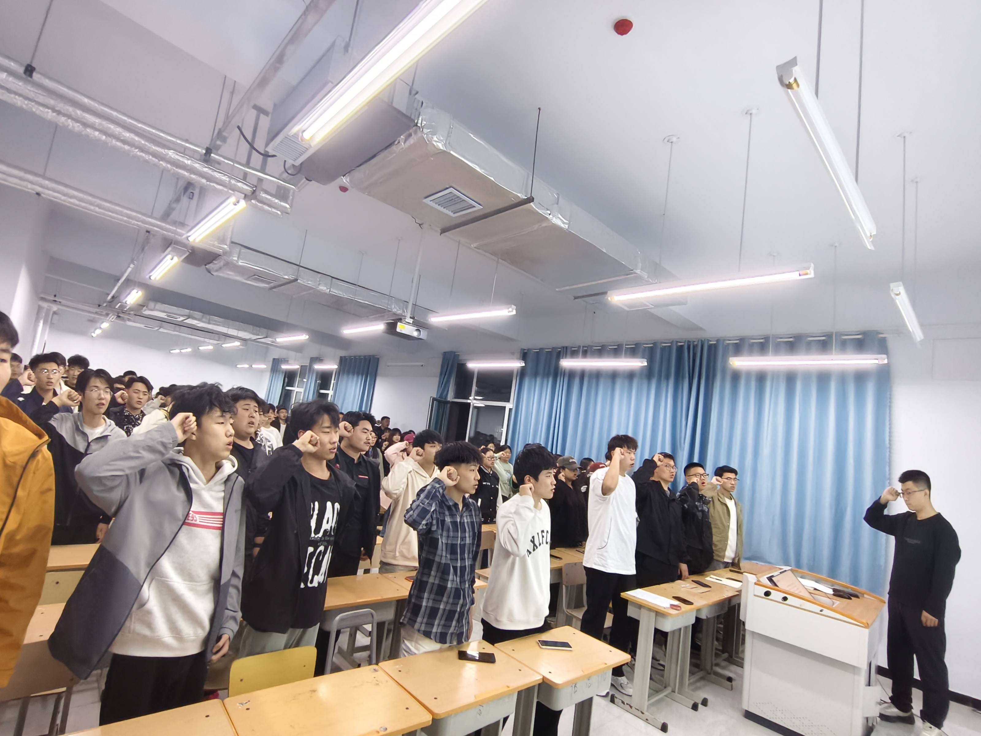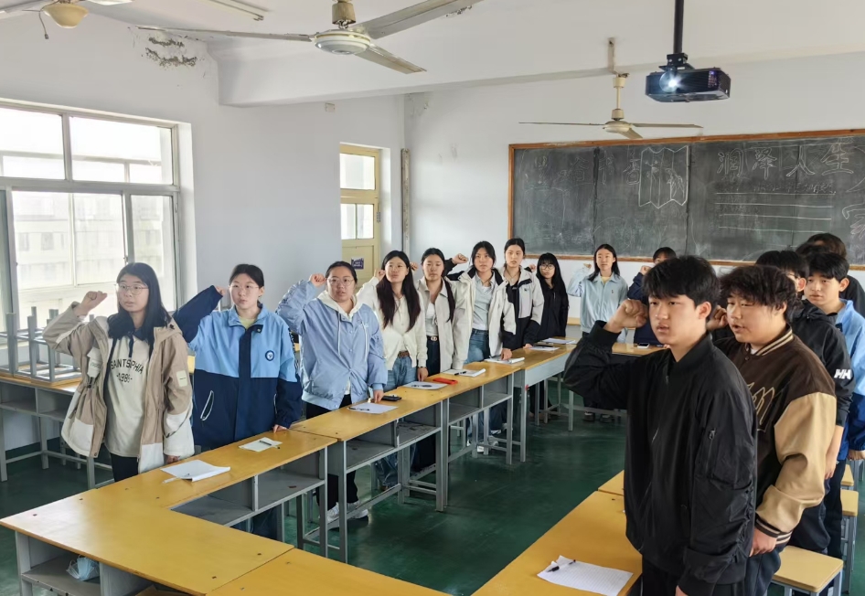 集体宣誓环节,同学们在老师带领下,起立握拳,誓言坚定有力,表达对祖国的忠诚,抵制危害国家安全行为,尽显新时代青年责任担当。宣誓结束,同学们有序签署《大学生国家安全承诺书》,神情严肃,以实际行动诠释“筑牢青春防线,守护国家安全”的内涵,展现维护国家安全的坚定决心。
