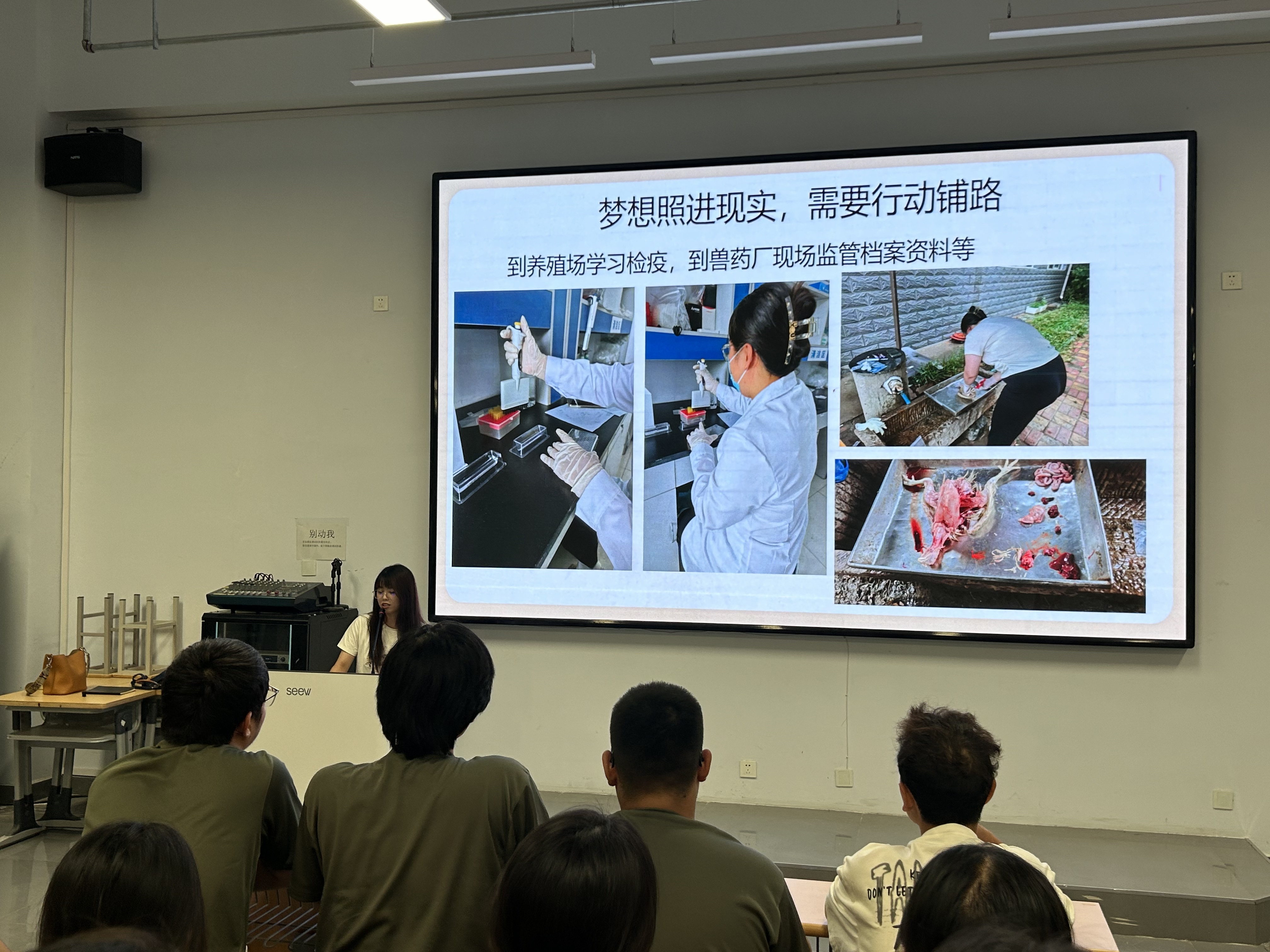 讲座由学院姜盈盈老师主讲,姜老师毕业于山东农业大学,中共党员,拥有本科和硕士学历,深耕宠物医疗领域教学与研究。她以“时代浪潮 - 机遇遍地 - ‘薪’想事成 - 成功之路”为脉络,为新生全方位解读专业。