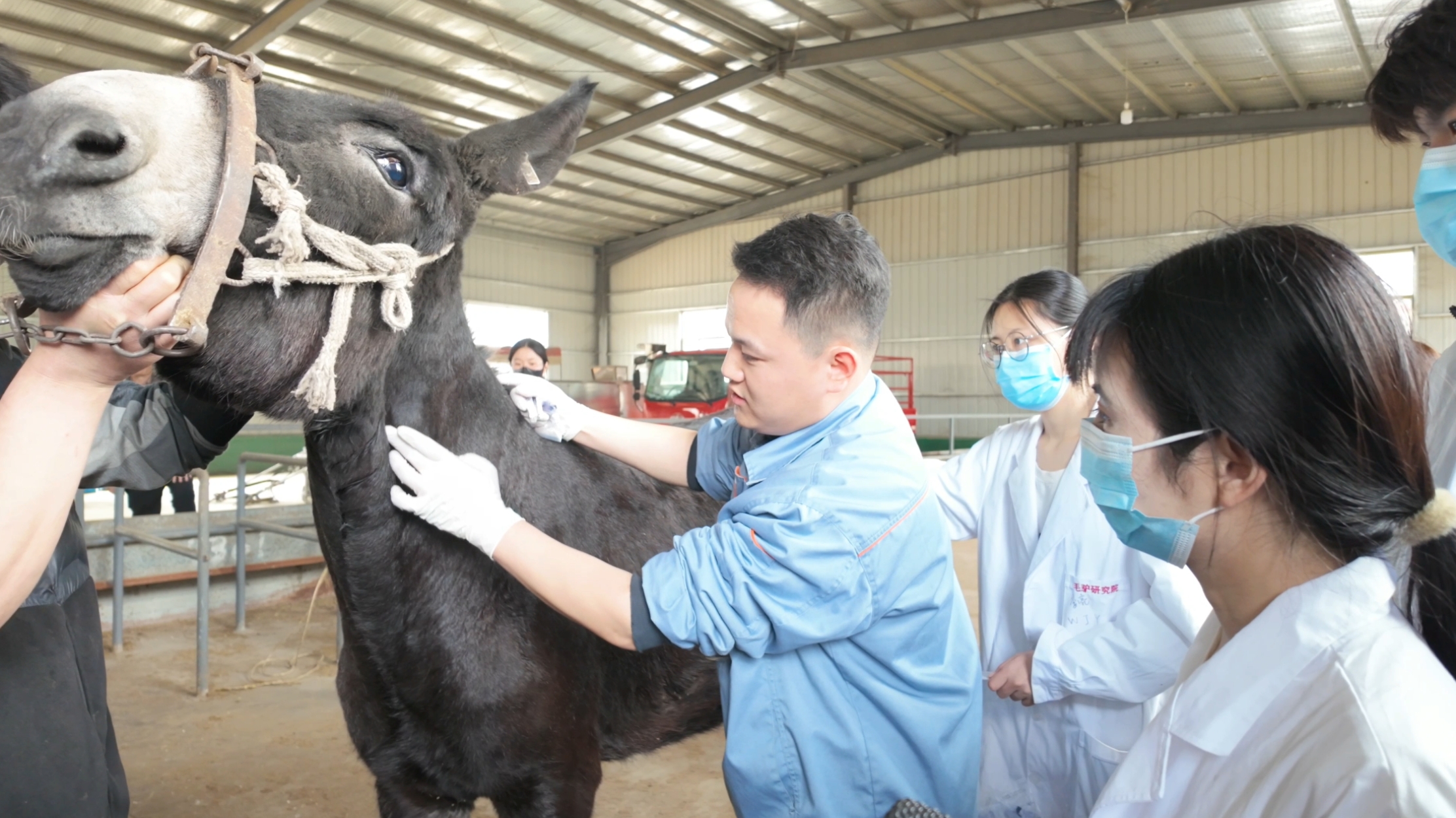 诊疗技能实操环节成为本次实践的重点内容,在企业诊疗区,公司兽医专家聚焦大型牲畜静脉采血及输液方法展开教学,详细讲解颈静脉位置、采血与输液操作要点,现场演示静脉穿刺、固定、输液速度调节等全流程。在企业专家与学院专业教师的双重指导下,学生们逐一上手练习,规范操作细节,切实提升了专业实操技能。