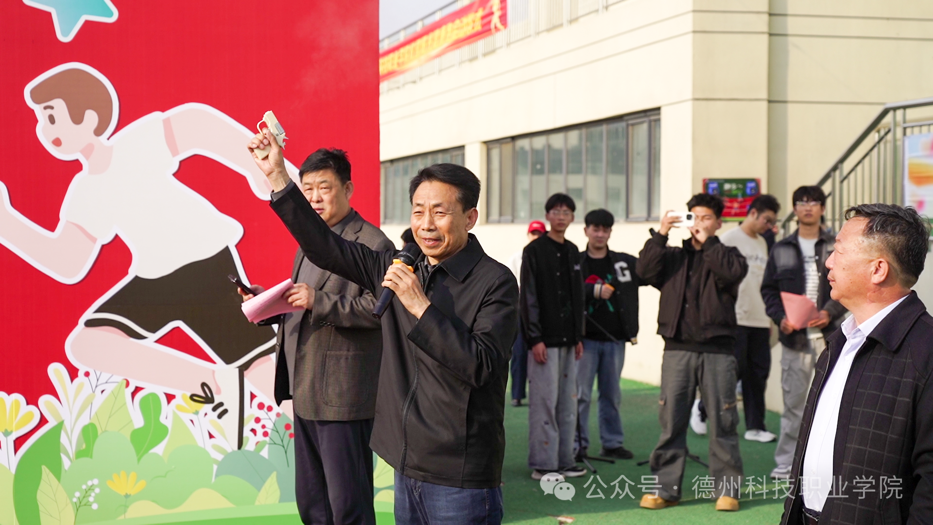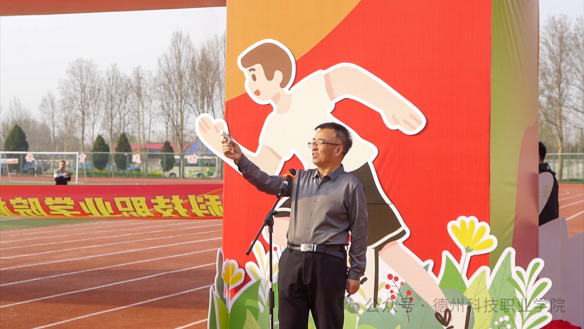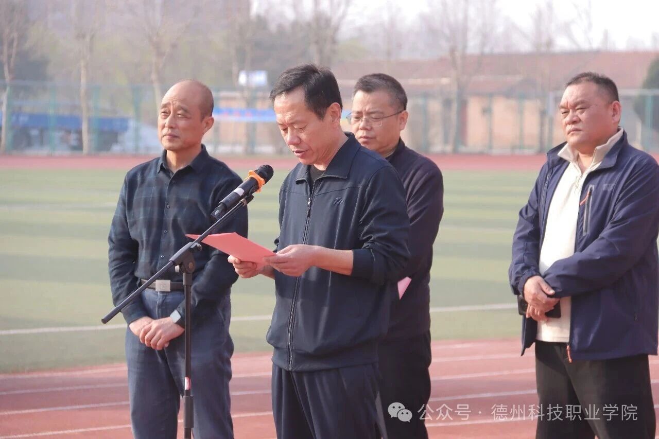 仪式上,基础教学部负责人宣读了《德州科技职业学院关于开展2025-2026学年校园阳光健康跑活动的通知》。