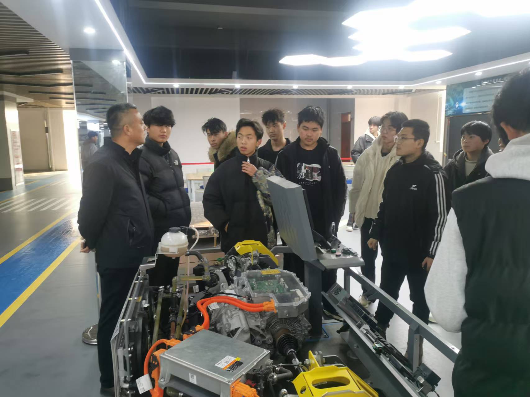 为深化实践教学,加强学生的专业认知,乡村振兴学院(五年制大专部)于12月5日下午组织23汽制精英班学生深入新能源汽车实训中心进行参观。此次活动由刘先锋院长带队,并特别邀请了交通学院的赵凯老师为同学们进行现场讲解。