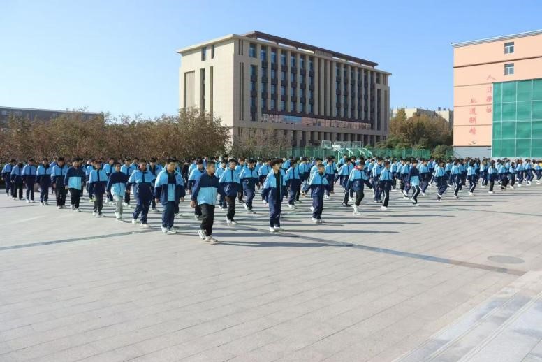 晨曦初露,校园尚朦胧,主教学楼静静矗立。同学们陆续汇聚教学楼下准备跑操,王泽坤老师身姿挺拔地站在队伍前,目光温和关切。他深知凉意袭人,一边高声叮嘱同学们多添衣裳、搓手取暖,一边示范热身动作。随着哨响,跑操开始,同学们步伐整齐,口号响亮,王老师矫健地跟随队伍,时刻关注着同学们的状态。有同学鞋带松开,他迅速提醒;有同学面露疲态,他跑去鼓励。在他的关怀下,同学们顺利跑完,校园开启活力满满的一天。