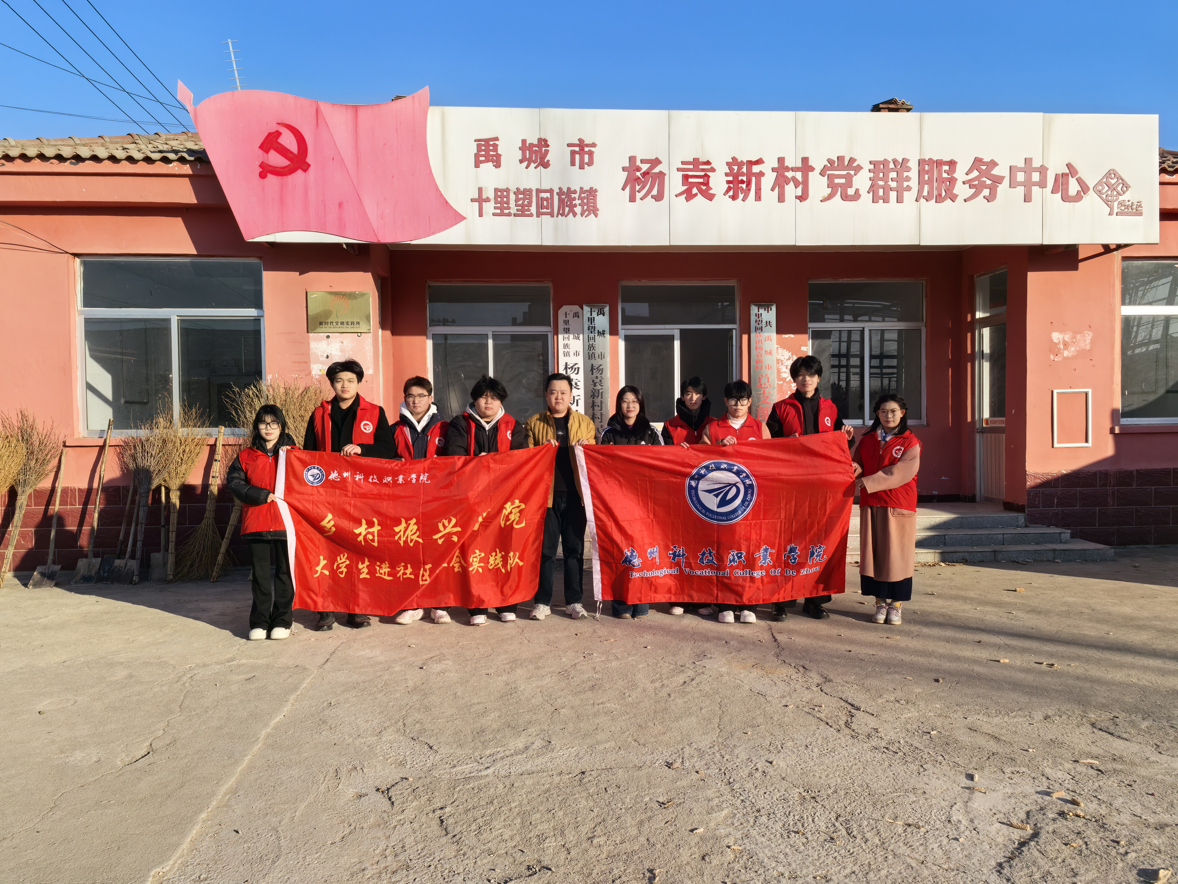为积极响应学院团委“上山、下河、进乡村”志愿服务号召,聚焦“进乡村”重点任务,12月5日上午,德州科技职业学院乡村振兴学院(五年制大专部)联合十里望回族镇杨袁新村居委会,在团总支副书记、学生科副科长王泽坤,学生会及自律会负责老师王鑫雨的带队下,组织8名志愿者赴杨袁新村党群服务中心周边开展志愿清扫活动。